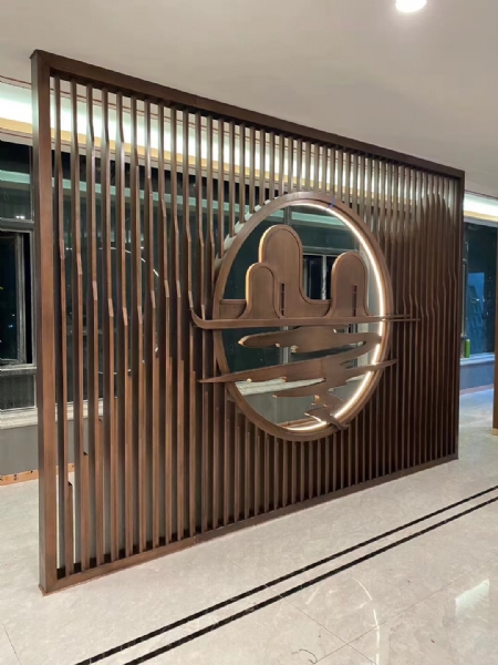 鋁藝影壁墻,端莊大氣,格調(diào)不凡,百年不銹,不開裂,不變形,不褪色,免維護,安裝方便簡單??筛鶕?jù)客戶圖紙要求現(xiàn)定制。